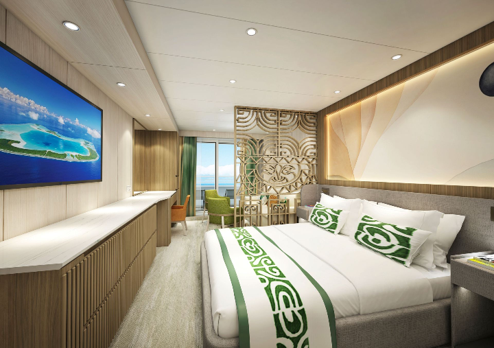 Onboard, guests enjoy the comfort of air-conditioned staterooms and suites, a swimming pool, four bars, a fitness room, a boutique, and panoramic lounges with floor-to-ceiling windows. Rich Polynesian décor, warm hospitality, and a crew drawn largely from the islands to create an atmosphere that feels like travelling with family.